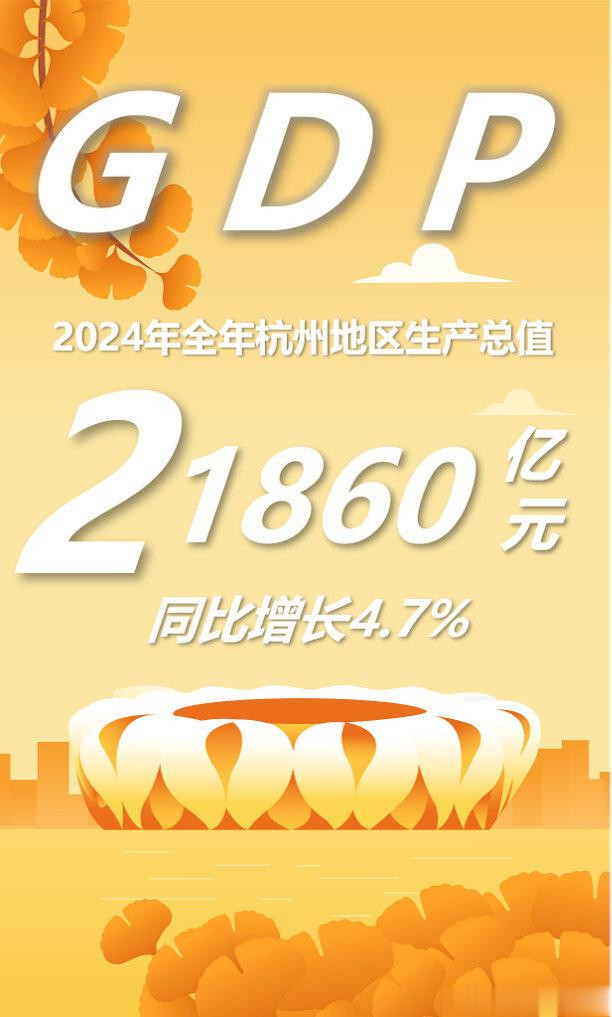 杭州实现GDP21860亿元, 同比增长4.7%